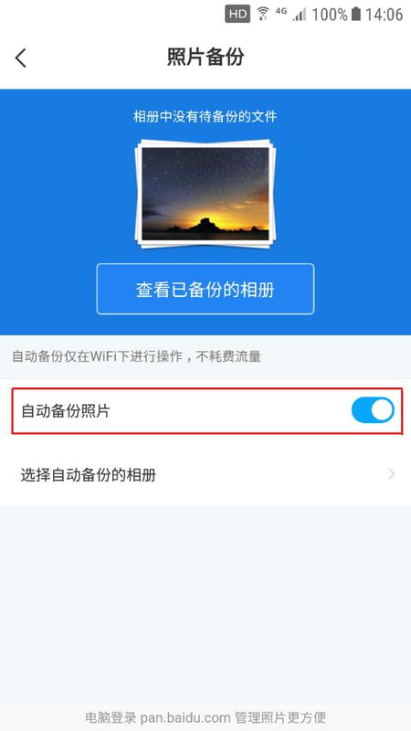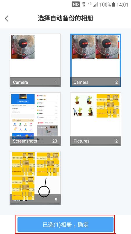 6、手机跳转到选择自动备份的相册页面,选择后单击下方的“确定”,百度网盘就能自动备份原图的照片了。