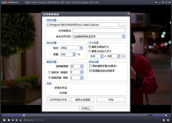 推荐使用完美解码中的 PotPlayer 播放器,播放后,在右键菜单中选择 视频 -- 图像截取 -- 连续截图: