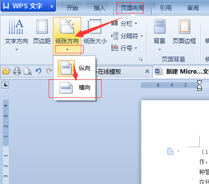 页面布局——纸张方向——横向,如图: