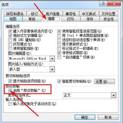 2、点击“工具”-“选项”。在“编辑”选项卡,取消勾选“启用即点即输”,就不会出现这种现象了。