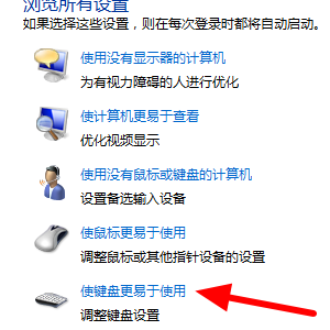 2、然后我们在弹出来的窗口中点击打开“使键盘易于使用”。