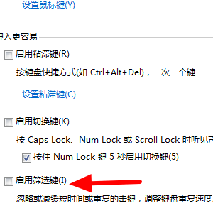 3、然后我们在弹出来的窗口中点击打钩“启用筛选键”,点击确定即可。