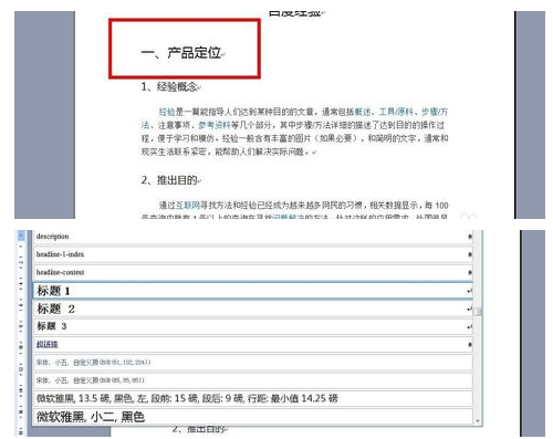 2.将文件中的层级关系确定清楚,如一级标题下面有几个二级标题,二级标题下又有几个三级标题等。然后对一级标题进行设置,选择“标题1”的样式。