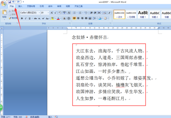 2、选择需要用虚线框起来的内容,点击“开始”功能