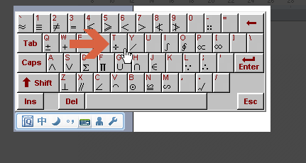 6.鼠标左键点击弹出的软键盘中的“÷”键即可。这样就解决了word里怎么打出除法的公式,中间有一个横杆的那种的问题了。