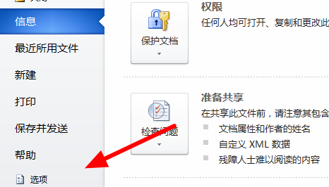 1、首先我们打开需要编辑的Word文档,点击打开文件中的“选项”。