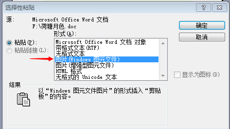 3.打开选择性粘贴窗口,选择“图片(增强型图元文件)”,单击确定。