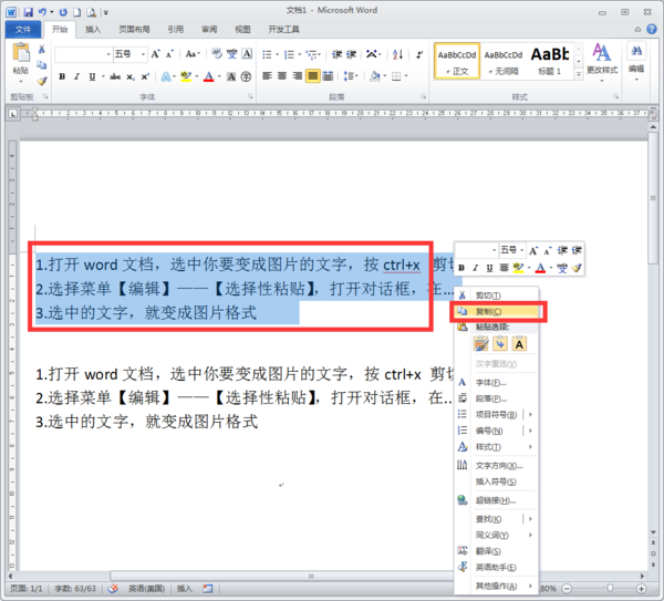 在我们插入的图片,右键,选择【复制图片中的文本】,可能提示正在转换,耐心等待一下,处理结束后,我们在右边空白处粘贴,即可把图片上的文字全部粘贴下来,这样我们就可以随意编辑了。