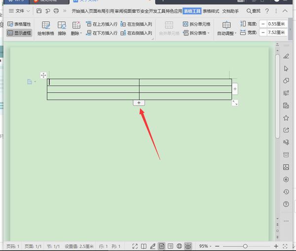 4、接下来选择红色箭头所指处的“+”就可以添加表格了,并且新添加的单元格与原先的一并对其了。