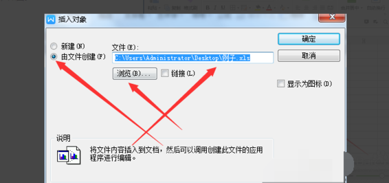 2、然后我们在弹出来的窗口中选择由文件创建并选择文件路径,也就是excel表格的文件路径。