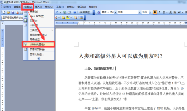 接着继续点击“视图”,选择“文档结构图”;