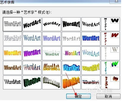 2、在艺术字库中选中艺术字样式 ,然后点击【确定】。