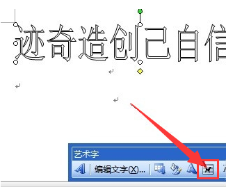 4、然后在word页面中鼠标单击刚才建立的的艺术字。选中后会在word左下角出现一个艺术字编辑栏。在编辑栏中选中“文字环绕”图标。