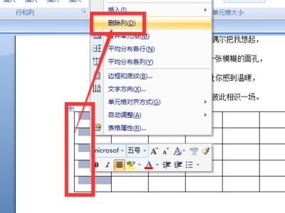 5.如果想删除列时,也是需要先选中需要删除的列,然后右键选择删除列。