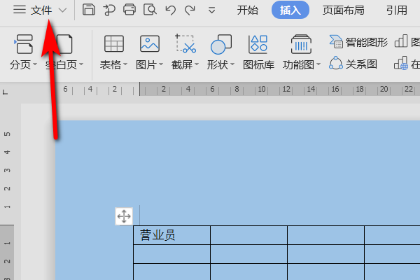 2、打开文档之后,选中需要打印的内容,并点击文档左上角的文件选项。