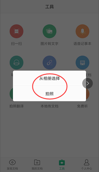 3、根据自己的情况,选择“手机相册”或者“拍照”,进行识别,就转化成电子版了。