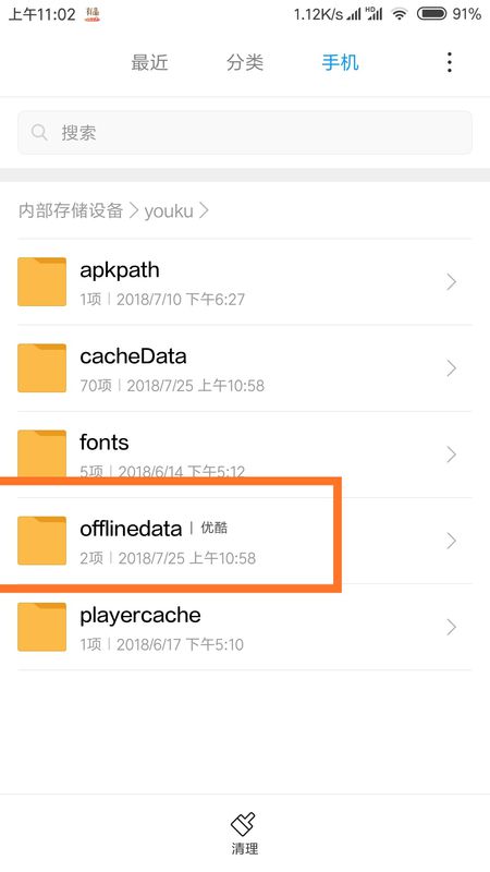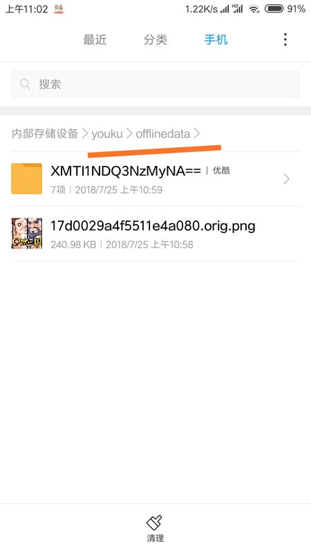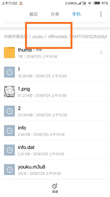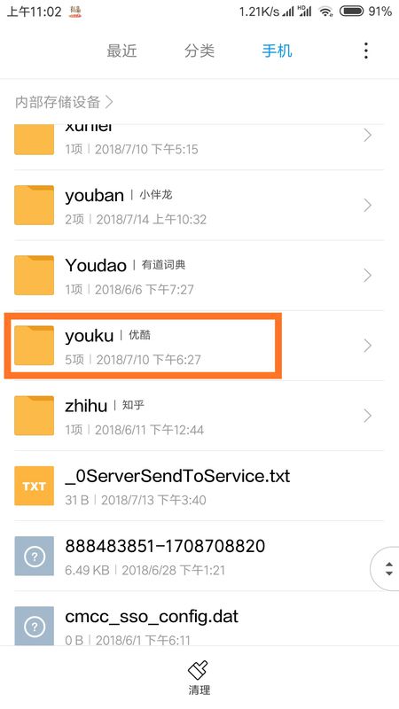 2.视频缓存完成后,接下来我们打开文件浏览器,找到优酷文件夹;