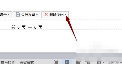 3.双击这个页码,进入编辑状态,找到删除页码命令的右下角有一个黑色三角符号,单击一下。