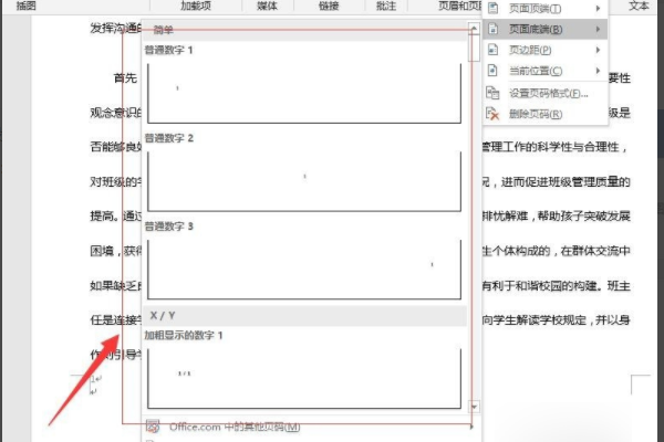 4、接着在页码底端弹出的下拉菜单,选择一个适合自己页码的格式。