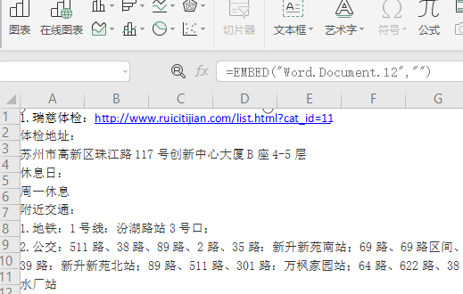 4.这样Excel中就插入了一个Word文档,可以点击打开查看或者进一步操作。