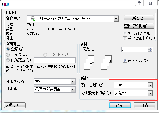 2、其他导致打印后字体变小的真正原因主要是打印时设置了缩放。每页的版数是不是“1版”?按纸张大小缩放是不是设置的“无缩放”?