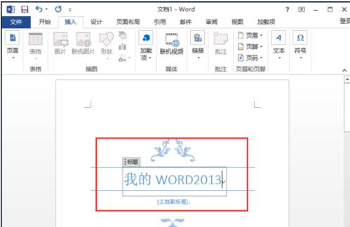 4、在编辑区域填上文档标题等信息,一个精美的封面就好了。