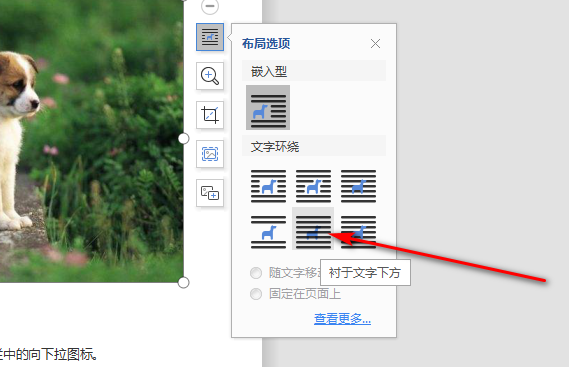 3、点击插入图片后,选中图片,点击图片右上角的图片布局选项。