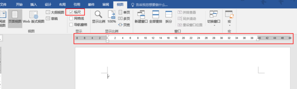 第二步:在“视图”功能区中,选中“标尺”复选框,标尺即可显示出来。