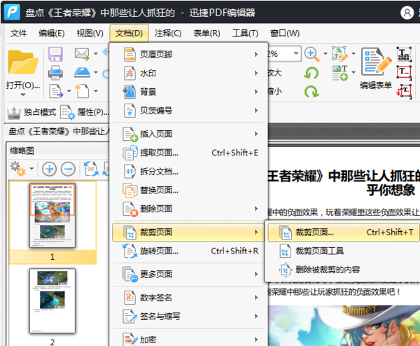 *我们点击“文档”——“裁剪页面”,然后进行点击,我们会在文件中看到一些设置页面