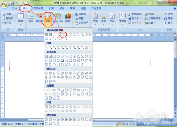 2、点击“插入”然后选择“形状”,在里面直接找到方框点击选中。