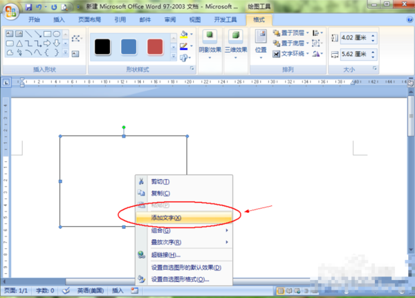 4、然后在方框中间,点击鼠标右键,选择“添加文字”。