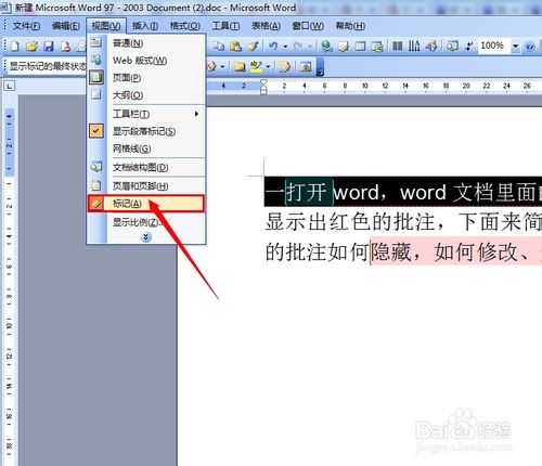 怎么在word2003查看批注