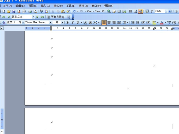 ①点击插入菜单,点分页按钮。光标将立即跳转到下一页