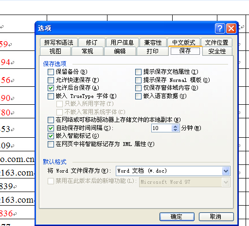 式实现的,因此如果要减少损失,就要在Word中依次点击“工具→选项→保存”,然后选中“自动保存时间间隔”项,接着将默认的10分钟改为5分种或更短