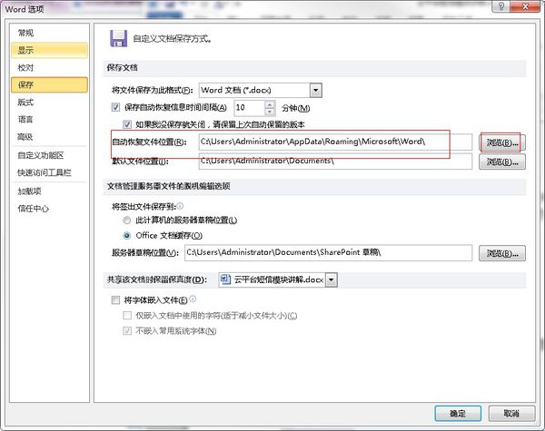 2010一般都是自动保存的,选择“文件”——“选项”,打开上图窗口,点浏览按钮。