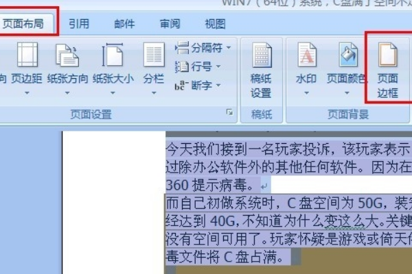 2、安下ctrl+A(全选)键,点击”页面布局“→”页面边框“。