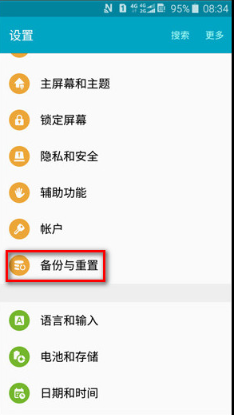 (2)向上滑动屏幕,找到并点击【备份与重置】。