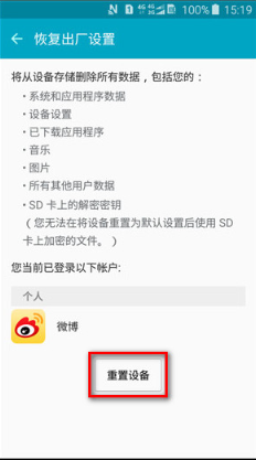 (4)点击【重置设备】。