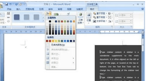 3、 WORD2007提供了多达三十多种样式供选择,主要排版位置、颜色、大小有所区别,你可根据需要选择一种。插入后可看到文本框工具栏已经弹出,输入你所需要的内容,之后对文本进行美化。