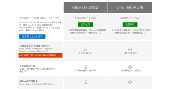 1、打开浏览器,进入微软Office试用页面https://products.office.com/zh-cn/try;