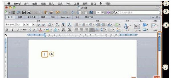 3、确实,Word 2011 在操作界面上与Windows系统上的Word还是有点不同的,也难怪有些朋友不知道如何在苹果电脑上创建Word文档了,对于Word 2011的基本操作界面,