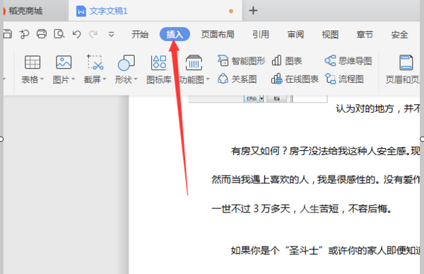 3、点击页面上方工具栏中的插入选项,打开插入工具菜单。