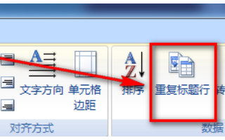 5、最后我们也可以选中第一行,选择功能区【重复标题行】达到同样目的。