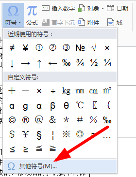 3.点击符号旁边的箭头,并选择其他符号选项进入。