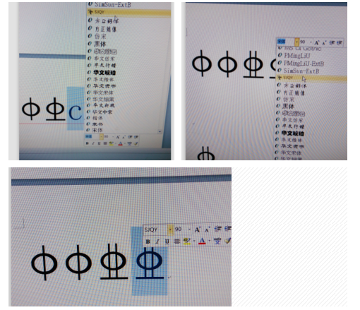b.在默认字体宋体输入法下输入shift+c,在office2010版本中选中字母然后右键选择SJQY字体即可出现如下所示符号