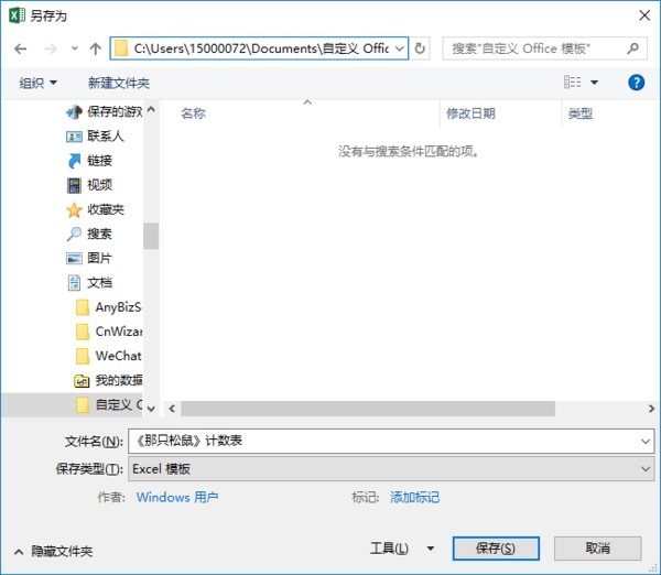 我的EXCEL2016保存时显示的模版位置如下图: