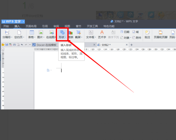 3、进入后选中插入形状,选择插入直线