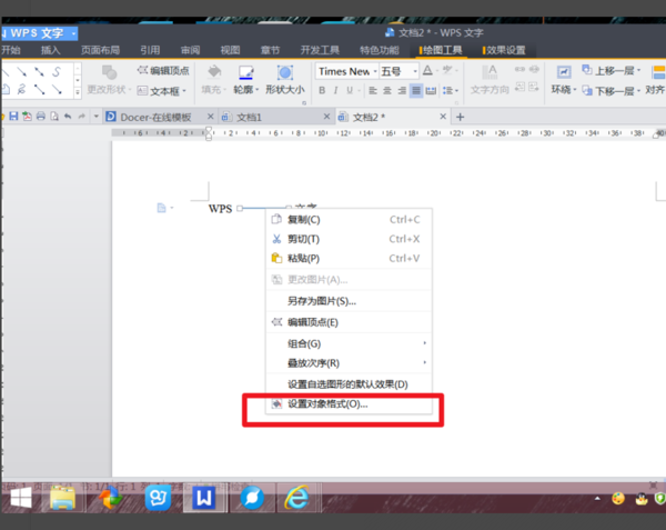 5、然后点击右键,打开设置对象格式按钮选项