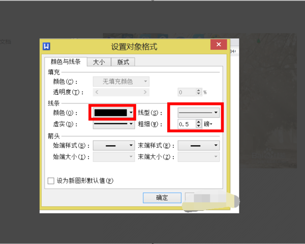 6、进入后将颜色和线条调制你所需要的即可完成设置。