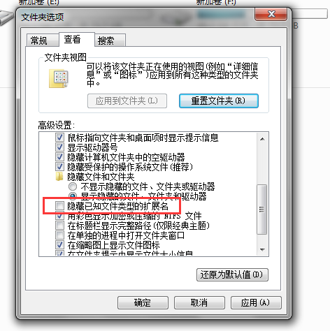 第二步:点击“查看”,之后找到“隐藏文件和文件夹”,勾选上“显示隐藏的文件、文件夹和驱动程序”去掉。之后点击“确定”即可完成设置。